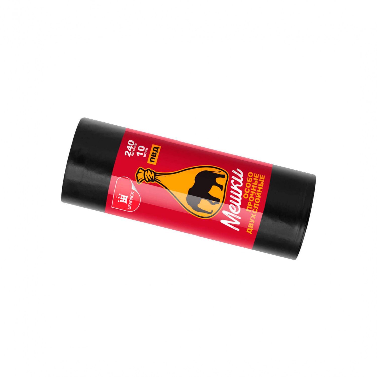 Мешки для мусора 240 л, черные, рулон 10 шт., ПВД 36 мкм, 1350х900 мм, Уфа Пак, МВ3926 (МВ 240-10ч)